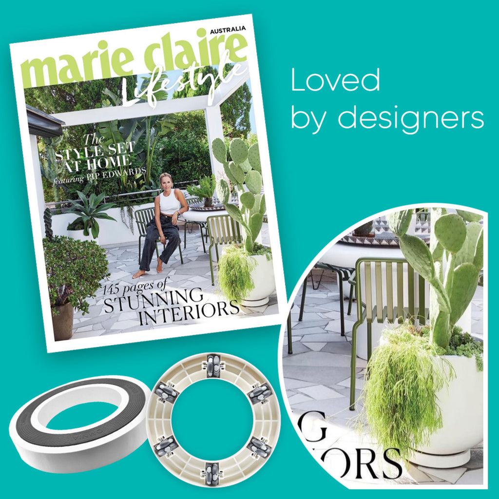 Unlike castor wheel products, the revolutionary omni-directional wheelbase allows you to move heavy pot plants (up to 50kg) without catching in cracks and gaps or tipping over. The six-wheel radial design gives Plant Glider unrivalled load stability and seamless directional control across a range of hard surfaces, including polished indoor floor boards, vinyl, tiles, pavers, concrete, crazy pavers, bricks, decks and more.*