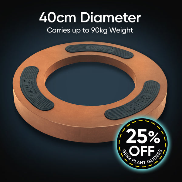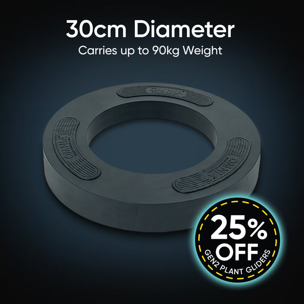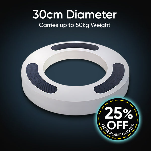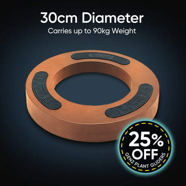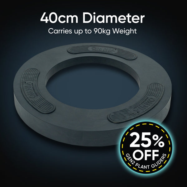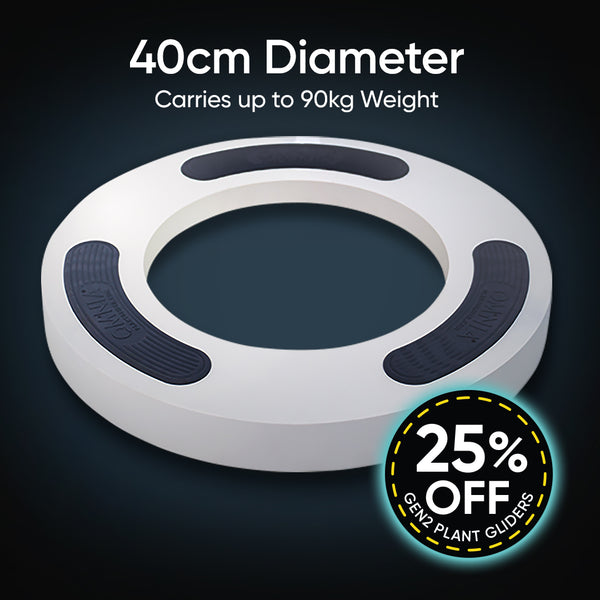 Plant Glider won't tip, jam or collapse, and it will never rust or fall apart. Hidden patented omni-directional wheels provide an effortless move for heavy pots, up to 90kg, without fail.