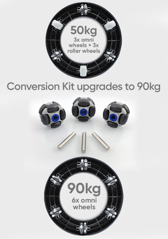 Need your 50kg Omnia Plant Glider to carry more weight? This 6 piece conversion kit upgrades 50kg Omnia Plant Gliders to 90kg load bearing capability (includes warranty for 90kg use). Easy DIY installation - complete in a few minutes. Watch the step-by-step video installation guide.