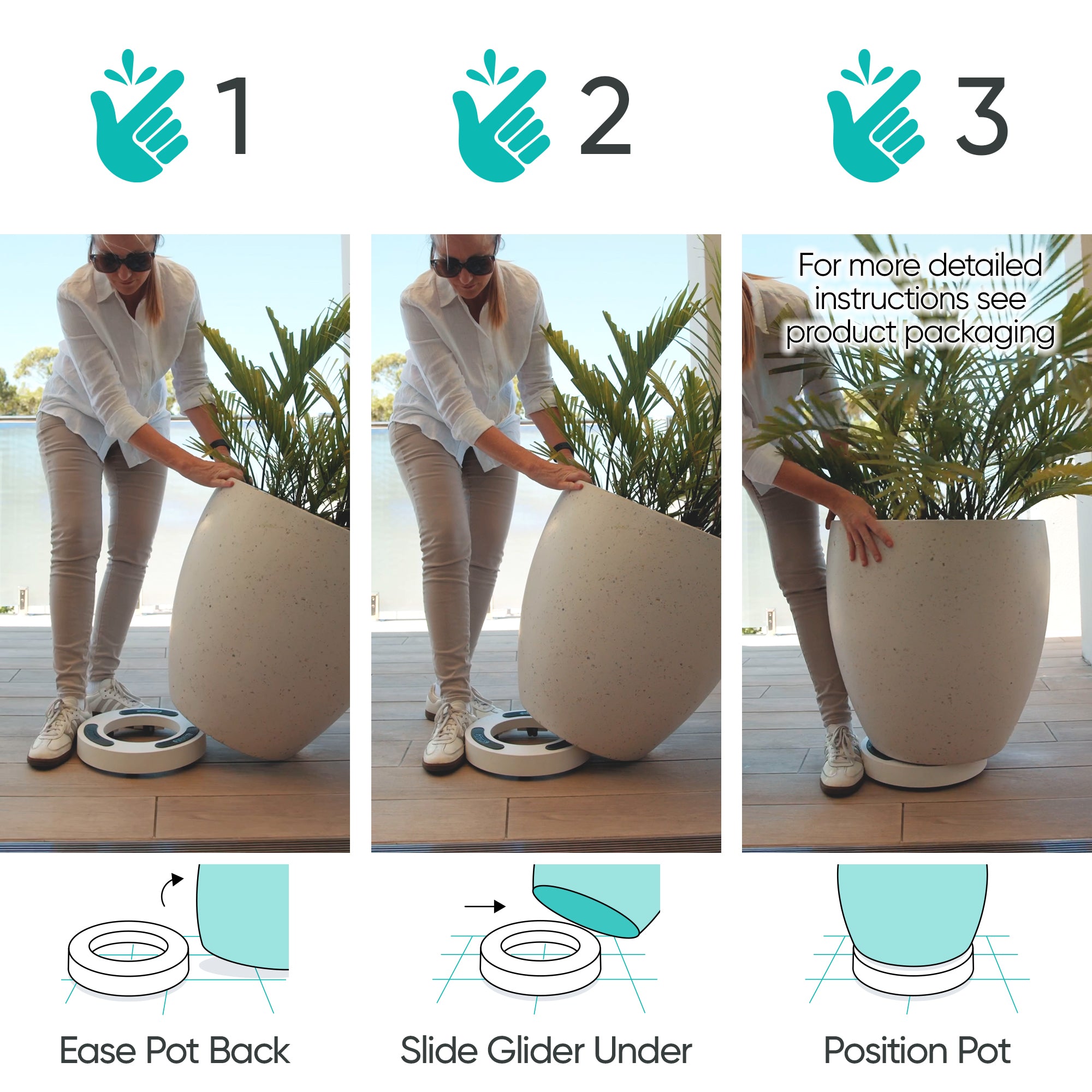 Simply follow our no-lift loading instructions for simple steps to load your heavy pot. With many plant caddies, you may need a strong friend to help — loading a heavy pot can be tricky and awkward. But, with the Plant Glider, we’ve made it easier. Plus, there’s no assembly required — just position your pot onto the Glider, and you’re ready to move!